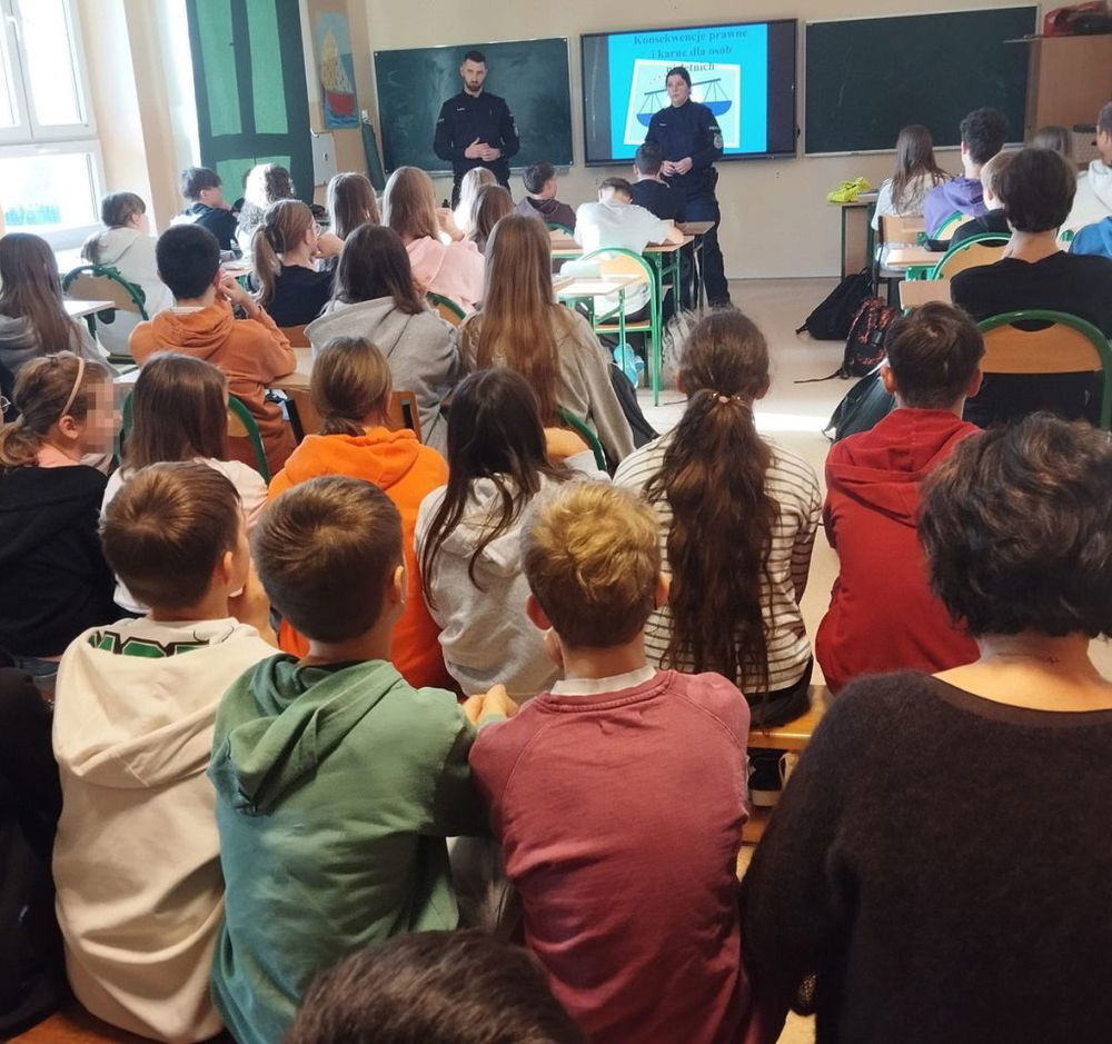 Podczas prelekcji omówiono również problematykę cyberprzestępczości oraz zagrożenia wynikające z nawiązywania kontaktów z osobami obcymi. Uczniowie zapoznali się z pracą Policji, umundurowaniem oraz wyposażeniem. Poruszono także temat agresji i przemocy w szkołach oraz przedstawiono podstawowe zasady zachowania w społeczności szkolnej.