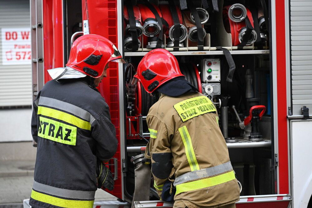 Szczecin, 26.08.2025. Straż pożarna podczas gaszenia pożaru mieszkania przy ulicy Niemierzyńskiej w Szczecinie, 26 bm. W wyniku pożaru ewakuowanych zostało pięć osób, dwoje dorosłych i trójka dzieci. W akcji gaszenia brało udział pięć zastępów straży pożarnej. (sko) PAP/Marcin Bielecki