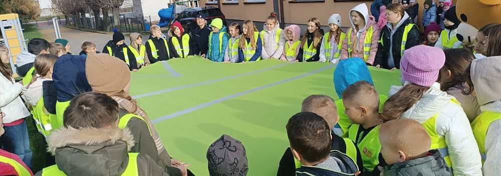Uczniowie ubrani w odblaskowe kamizelki uczyli się, jak zwiększyć swoją widoczność na drodze. Funkcjonariusze pokazali praktyczne sposoby noszenia elementów odblaskowych i wyjaśnili, w jakich miejscach są one najbardziej skuteczne.