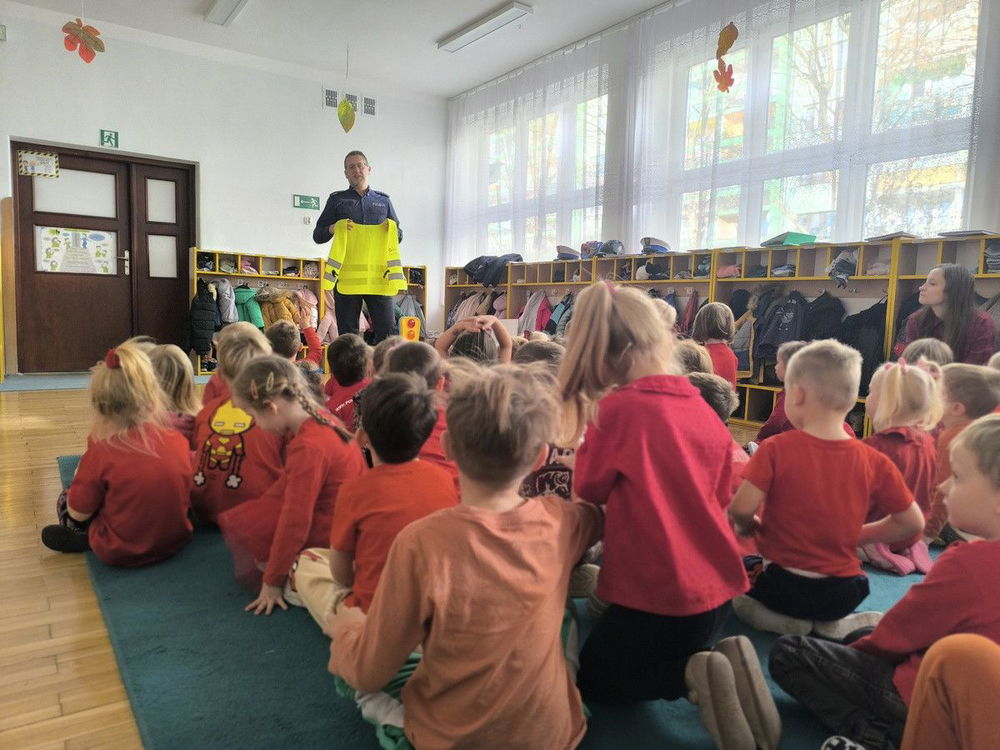 Funkcjonariusze Wydziału Ruchu Drogowego odwiedzili Przedszkole Samorządowe nr 142 na osiedlu Przy Arce by w przystępny sposób przypomnieć najmłodszym podstawowe zasady bezpieczeństwa na drodze. Zajęcia prowadzone były z wykorzystaniem ilustracji i praktycznych przykładów dostosowanych do wieku dzieci.