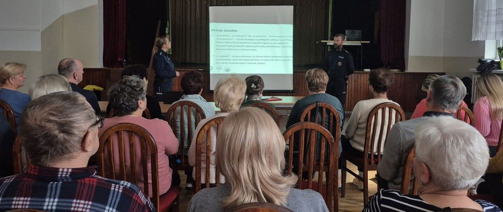 Podczas prelekcji omówiono najczęstsze zagrożenia cyfrowe oraz praktyczne zasady ograniczające ryzyko oszustw. Uczestnicy poznali sposoby rozpoznawania podejrzanych wiadomości, zabezpieczania kont i haseł oraz bezpiecznego korzystania z usług bankowości elektronicznej i portali społecznościowych.
