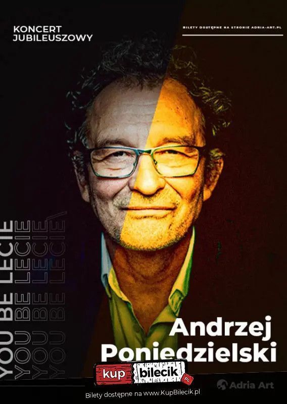 Andrzej Poniedzielski obchodzi 50-lecie pracy artystycznej i 70-lecie urodzin. Z tej okazji artysta wyrusza w trasę koncertową, w trakcie której wraz z widzami uczci te dwa piękne jubileusze. Zapraszamy na koncerty wypełnione inteligencją, ciepłem i humorem.