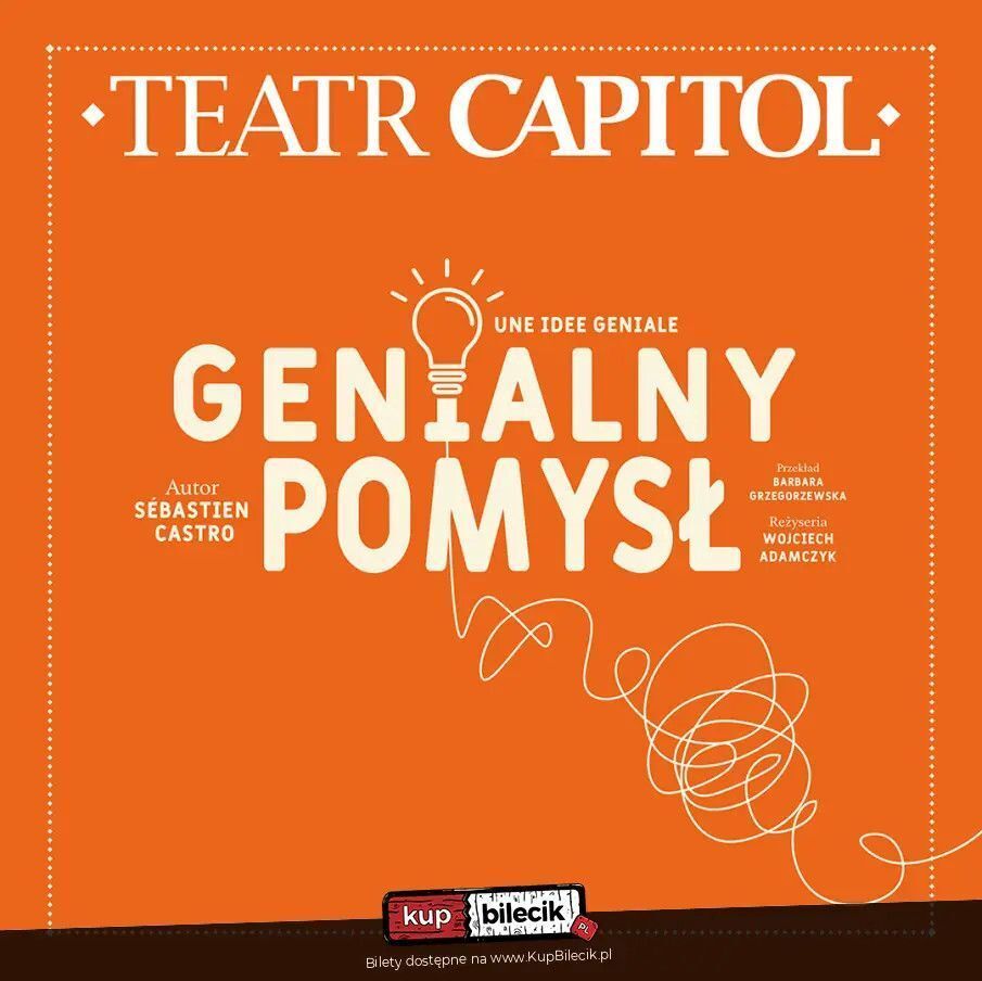 "Sztuka Une Idée Géniale / Genialny Pomysł" autorstwa Sébastiena Castro jest reprezentowana przez Agencję DRAMA - Paryż (Francja). Licencja na korzystanie z Utworów została udzielona przez Stowarzyszenie Autorów ZAiKS.