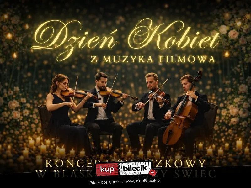 W programie znalazły się utwory towarzyszące najpiękniejszym filmowym momentom - romantyczne walce, liryczne tematy i piosenki, które wielu z nas kojarzy z ważnymi scenami na ekranie. To muzyka, która budzi wspomnienia i tworzy wyjątkowy nastrój, idealny na wieczór spędzony w dobrym towarzystwie. Subtelne światło świec i dźwięki kwartetu smyczkowego sprawiają, że ten koncert staje się miłym sposobem na uczczenie Dnia Kobiet - bez pośpiechu, w atmosferze spokoju, blisko pięknej muzyki filmowej.