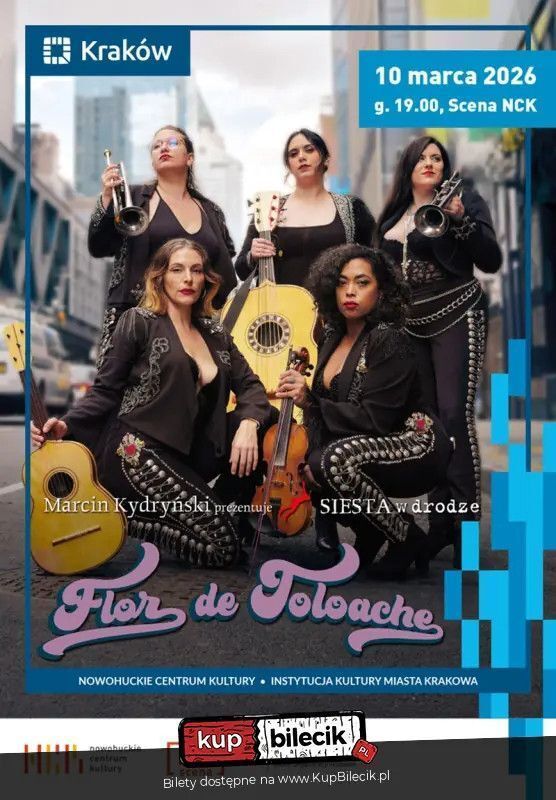 Grupa podbiła międzynarodowe sceny od Meksyku po Japonię i intensywnie koncertowała w miastach Stanów Zjednoczonych, Europy i Ameryki Łacińskiej. Po wydaniu w sumie pięciu albumów studyjnych, "Las Flores" - jak pieszczotliwie nazywają je fani - niedawno wydały Motherflower, który same artystki opisują jako intensywnie feministyczną mozaikę gatunków inspirowanych mariachi. Nagrodzony Grammy, przyjęty przez Joego Bidena na koncercie w Białym Domu, zaproszony na galę Kennedy Center Awards, najsłynniejszy zespół meksykańskich mariachi rusza w Polskę, w wiosenną trasę Siesty w Drodze. Na spotkanie z nimi nikt nie był gotowy. Bo nawet nie ich oczywista muzyczna maestria, wirtuozeria. Nie zmysłowy puls tradycyjnych i współczesnych pieśni zapewnił grupie Flor de Toloache jej kultowy status. To fakt, że w grupie mariachi, tej esencji idei "macho" są same kobiety! W Meksyku to mogłoby się nie udać, dlatego panie zaczęły muzykować w nowojorskim metrze. New York Times nazwał je sensacją i w 2014 roku powstała pierwsza płyta. Za kolejną zespół dostał już Grammy a na trzeciej pojawili się goście takiego formatu jak John Legend. Dziewczyny z akustycznymi instrumentami, fenomenalne głosy. Tak wiele wybitnej a zarazem jasnej, tanecznej muzyki. Flor de Toloache to w naszym zielniku kwiat bielunia księżycowego. W Meksyku nazwa tego kwiatu, zapożyczona z języka nahuatl znaczy "czcigodny", albo: "pochyl głowę". To roślina znana jako "majacząca", wywołuje bowiem silne halucynacje. Od wieków meksykańscy szamani palą cygara z jej liści i żują jej ziarna podczas rytuału przejścia w głębszą świadomość. I my, każdego wieczoru, zostaniemy poddani magii i zabrani w odmienny, odległy świat, przez posłanniczki z kraju wielkiej Fridy. - Marcin Kydryński