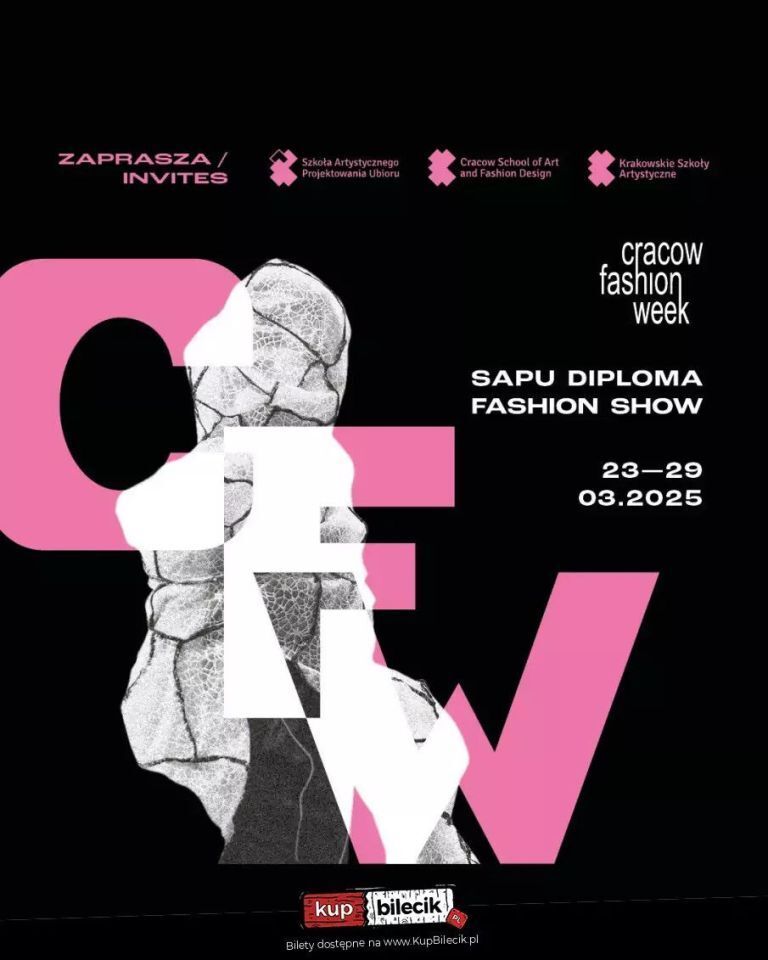 Bilety do nabycia na: KupBilecik.plJuż 16 marca POKAZ DYPLOMOWY SAPU otworzy CRACOW FASHION WEEK, jedno z najważniejszych wydarzeń modowych w Polsce. W ramach konkursu Cracow Fashion Awards będziecie mogli zobaczyć Część Premierową, podczas której swoje kolekcje zaprezentują najlepsi tegoroczni absolwenci SAPU z Polski i zagranicy. Bilet uprawnia do wejścia na pokaz Premierowy o godz. 12:00. Wydarzenie odbędzie się w Muzeum Lotnictwa Polskiego w Krakowie. Serdecznie zapraszamy!