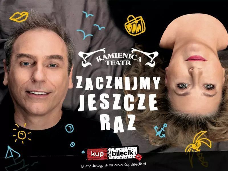 "Zacznijmy jeszcze raz" to komedia napisana specjalnie dla Aldony Jankowskiej i Tomasza Sapryka, przez Aleksandrę Wolf (autorkę tekstów do telewizyjnego kabaretu Rozmowy w Tłoku z programu "Szymon Majewski Show"). To spektakl, który przypłynął do Teatru Kamienica z Gdyni. Osadzony w jednym z najpiękniejszych polskich miast, oddaje atmosferę nadmorskiego kurortu.