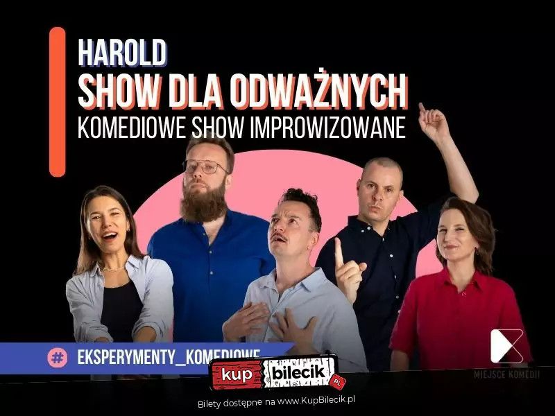 | Spektakl dla odważnych - Harold | Komediowe Show Improwizowanedodano 2025-09-08 11:14:36 Powrót do korzeni dawnej Grupy Ludzi. Zagramy Harolda - legendarny format improwizowany, od którego zaczęły się niezliczone wariacje i współczesne spektakle impro. Harold to nie tylko format. To rytuał improwizatorów, źródło wielu współczesnych spektakli, struktura i chaos splecione w jedno. Na scenie rodzi się świat, który powstaje i znika na oczach widzów - nieprzewidywalny, dziki, ulotny. Powrót do Harolda to powrót do źródła - do formy, która wymaga od artystów pełnej obecności, odwagi i gotowości, by oddać się wspólnej podróży. To spektakl, w którym euforia miesza się z ryzykiem, a humor z napięciem. Dla widza to zaproszenie do doświadczenia czegoś rzadkiego - improwizacji w jej najczystszej postaci. Każdy Harold jest inny. Każdy dzieje się tylko raz. Być może nigdy więcej nie zobaczycie podobnego. Miejsce Komedii artyści: Komedia, której nie da się zaspoilerować!Najlepsi krakowscy komicy grający komediowe spektakle improwizowane, opowiadają historie, zawiązują relacje, żonglują emocjami i doprowadzają do wybuchów śmiechu. Ich spektakle nie mają scenariusza, ale zapewniają przednią zabawę. Tworzą światy, w których publiczność ma wpływ na przebieg wydarzeń i w których przegląda się jak w lustrze. Bilety do nabycia na: KupBilecik.pl |
