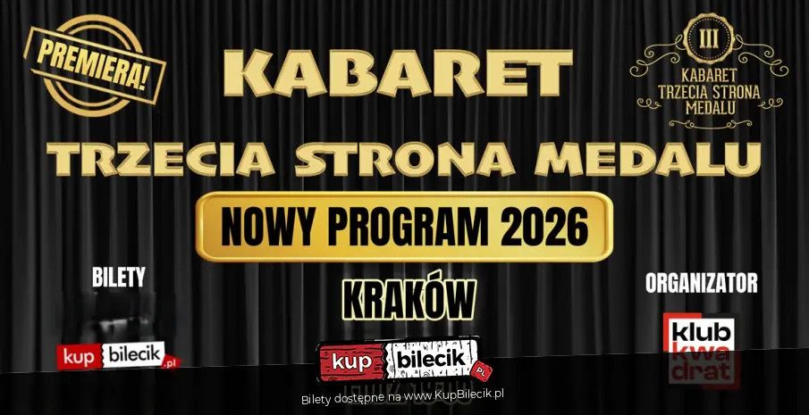 | Nowy Program 2026dodano 2025-09-22 19:13:14 Premiera! Nowy program 2026! Poprzedni program pokochały miliardy Polaków. Tak, dobrze czytasz - miliardy. Wliczając tych, którzy widzieli go tylko we śnie, przez szybę, albo nie wiedzą, że go widzieli - ale się śmiali. Nowy program Kabaretu Trzecia Strona Medalu to poziom wyżej. Albo w bok. Albo pod kątem, którego jeszcze nikt nie widział. Będą skecze tak świeże, że możemy je sprzedawać na targu na kilogramy. Piosenki, które wbijają się w głowę jak refren hitu z lat 2000. No i akordeon - ten sam, ale bardziej. Czego się spodziewać? Tego, co niespodziewane. Nowych numerów, zupełnie nowych emocji i zaskoczeń. Będzie śmiesznie, będzie absurdalnie, będzie ludzko. A jak dobrze pójdzie - to nawet mądrze, ale przypadkiem. To nie jest program do oglądania z dystansu. To program, który wciąga. Widz nie jest tylko widzem. Jest częścią. Jak klapki w wakacje - niby osobno, ale bez nich nigdzie nie dojdziesz. Jeśli jeszcze nie byłeś (a na pewno nie byłeś bo to program na 2026*) To już czas zarezerwować swoje miejsce! Zanim zniknie! Szybko! Jak śmiech! I brawa! I owacje na stojąco! Po ostatnim programie! Jeśli dalej to czytasz, gratulacje! Tutaj nikt już nie czyta! Chyba, że potrafisz podróżować w czasie to daj znać w komentarzu jak wrażenia. Sami jesteśmy ciekawi jak wypadliśmy. Bilety do nabycia na: KupBilecik.plKabaret Trzecia Strona Medalu artyści: Marek Gajewski, Wojciech Smyk, Łukasz Adamus, Szczepan Szubzda, Damian FilowiczKabaret Trzecia Strona Medalu czyli powiew świeżości na polskiej scenie kabaretowej. Połączenie młodości i doświadczenia z muzyką na żywo, przy akompaniamencie akordeonu. To paczka facetów o satyrycznym i prześmiewczym podejściu do życia, których zainteresowanie przerodziło się w pasję. Obrońcy piosenki kabaretowej. Czterech facetów i grzejnik. Takie kwartetowe trio w duecie a capella! Inteligentni, przystojni, zabawni – tylko tego im brakuje. Uczestnicy ponad 90 festiwali kabaretowych, laureaci ponad 70 nagród i wyróżnień, w tym zwycięzcy Ryjkowego Konkursu na Boczku 2022 oraz 2023! Twórcy hitu „Baby dają w szyję”. Bilety do nabycia na: KupBilecik.pl |