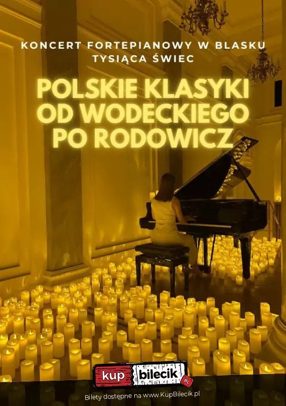 bilety: Candle Live Music zaprasza na wyjątkowy wieczór pełen nostalgii, emocji i niezapomnianych melodii. W kameralnej, nastrojowej scenerii - przy blasku tysiąca świec - zabrzmią instrumentalne aranżacje największych przebojów polskiej estrady. Usłysz ponadczasowe utwory takich legend jak Zbigniew Wodecki, Irena Santor, Perfect czy Maryla Rodowicz - w nowych, subtelnych interpretacjach, które pozwolą odkryć je na nowo. To koncert pełen wspomnień, który poruszy zarówno serca tych, którzy dorastali przy tych dźwiękach, jak i młodszych słuchaczy ciekawych historii ukrytych w melodiach. Niezależnie od wieku - ten wieczór jest dla Ciebie. Przyjdź, wsłuchaj się i daj się porwać muzyce, która od lat łączy pokolenia. Artyści: Fortepian: Jakub Stachura. Program: Repertuar może ulec drobnym modyfikacjom. Nietuzinkowe wnętrze, tysiąc świec i nastrojowe brzmienia wprawią Cię we wspaniały nastrój i dostarczą świetnej rozrywki. Candle Live Music: Koncerty przy świecach artyści: Różni artyściZapraszamy na wyjątkowy koncert, który wprowadzi Cię w magiczny nastrój. Koncert będzie pełen znanych utworów którym towarzyszyć będzie blask setek świec. Utwory wykonane będą przez trio smyczkowe w akompaniamencie fortepianu i wokalu. Bilety do nabycia na: KupBilecik.pl |