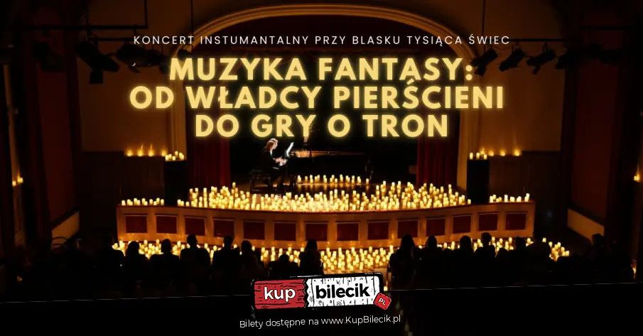 bilety: Candle Live Music zaprasza na wyjątkowy koncert instrumentalny z muzyką z najbardziej znanych produkcji fantasy. W nastrojowej przestrzeni, wypełnionej świecami, zabrzmią utwory z takich filmów i seriali jak Władca Pierścieni, Wiedźmin, Gra o Tron i Harry Potter. To idealna okazja, by na żywo usłyszeć znane tematy filmowe w nowych, kameralnych aranżacjach. Światło tysiąca świec i otoczenie kwiatów stworzą niepowtarzalny klimat - sprzyjający relaksowi, skupieniu i oderwaniu się od codzienności. To świetna propozycja dla fanów muzyki filmowej i serialowej. Czeka Cię wieczór pełen znanych melodii i wyjątkowej atmosfery!