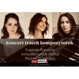 bilety: Koncert trzech kompozytorek. Evgeniia Karuzina - ukończyła Konserwatorium w Kazaniu (Rosja) na wydziale teorii i kompozycji. Autorka tworzy miniatury fortepianowe, które zachwycają świeżością i jednocześnie brzmią zaskakująco znajomo. Jej melodyka wyrasta z wokalnych tradycji współczesnego rocka i popu, a klasyczna forma nadaje kompozycjom szlachetną głębię. Dzięki temu muzyka Evgenii łączy dwa światy - przemawia zarówno do muzyków akademickich, jak i do fanów muzyki popularnej. Koncert trzech kompozytorek artyści: Evgeniia Karuzina, Paulina Stateczna,Anna Martyniuk-TofilukEvgeniia Karuzina – ukończyła Konserwatorium w Kazaniu (Rosja) na wydziale teorii i kompozycji. Autorka tworzy miniatury fortepianowe, które zachwycają świeżością i jednocześnie brzmią zaskakująco znajomo. Paulina Stateczna – absolwentka Akademii Muzycznej w Katowicach, gdzie ukończyła jednolite studia magisterskie na kierunkach: kompozycja i teoria muzyki oraz fortepian. Anna Martuniuk-Tofiluk – pianistka, pedagog, absolwentka Akademii Muzycznej im. F. Chopina w Warszawie. Aranżuje, komponuje i łączy muzykę klasyczną ze standardami muzyki rozrywkowej oraz filmowej. Bilety do nabycia na: KupBilecik.pl |