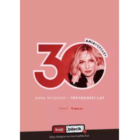 bilety: Ania Wyszkoni - 30 lat. Trzy dekady na scenie, trzy rozdziały jednego wieczoru i jedna artystka, której piosenki dorastały razem z nami. "30 ANIAversary" to jubileuszowa trasa Ani Wyszkoni: powrót do klasyków Łez, przekrojowy set solowych hitów z ostatnich lat oraz zapowiedź nowego albumu. Sentyment, energia i premierowe akcenty - wyjątkowa podróż przez 30 lat muzyki.