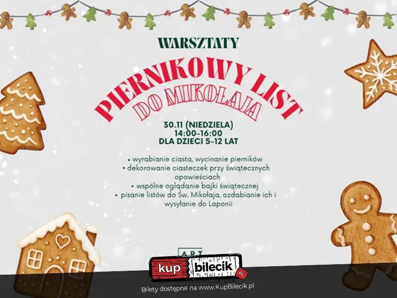 | Piernikowy List do Mikołaja - przedświąteczne wydarzenie dla dzieci w wieku 5-12 latdodano 2025-11-18 11:13:30 rozpoczęcie: