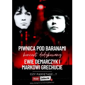bilety: Artyści słynnej Piwnicy pod Baranami zapraszają na koncert pt. "Czy pamiętasz?". To muzyczno-poetycki hołd dedykowany Ewie Demarczyk i Markowi Grechucie. Ewa Demarczyk i Marek Grechuta to diamenty, które pojawiają się raz na kilka dekad. Ich wyjątkowe głosy i interpretacje są nie do podrobienia. Ewa Demarczyk zadebiutowała na scenie Piwnicy pod Baranami w 1962 roku, na której szybko została okrzyknięta czarnym Aniołem Piwnicy. Marek Grechuta debiutował z zespołem Anawa w Krakowie w 1966 roku. Występy artystów zachwycały publiczność nie tylko krakowską, ale nawet obcojęzyczną. "Czy pamiętasz?" - to koncert przygotowany przez artystów Piwnicy Pod Baranami w hołdzie Demarczyk i Grechucie. Podczas koncertu usłyszą Państwo m.in. "Tomaszów", "Balladę o cudownych narodzinach Bolesława Krzywoustego", "Groszki i róże", "Skrzypka Hercowicza", "Na moście w Avignon", "Grande Valse Brillante", "Będziesz moja Panią", "Zabij ten lęk", "Gdziekolwiek", "Takiej miłości", "Niebieski młyn", "Puchowego śniegu tren", "Nad zrębem planety", "Kraków" i wiele innych, także hymny piwniczne. Bilety do nabycia na: KupBilecik.plCzy pamiętasz? - koncert dedykowany Ewie Demarczyk i Markowi Grechucie artyści: Artyści Piwnicy Pod BaranamiArtyści słynnej Piwnicy pod Baranami zapraszają na koncert pt. "Czy pamiętasz?". To muzyczno-poetycki hołd dedykowany Ewie Demarczyk i Markowi Grechucie. Ewa Demarczyk i Marek Grechuta to diamenty, które pojawiają się raz na kilka dekad. Ich wyjątkowe głosy i interpretacje są nie do podrobienia. Ewa Demarczyk zadebiutowała na scenie Piwnicy pod Baranami w 1962 roku, na której szybko została okrzyknięta czarnym Aniołem Piwnicy. Marek Grechuta debiutował z zespołem Anawa w Krakowie w 1966 roku. Występy artystów zachwycały publiczność nie tylko krakowską, ale nawet obcojęzyczną. Bilety do nabycia na: KupBilecik.pl |