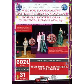Zapraszam Państwa na wyjątkowy i niezapomniany, pełen emocji koncert pod nazwą "Wieczór karnawałowy- spotkanie z muzyką klasyczną, piosenką aktorską oraz tanecznymi hitami lat 80. i 90.