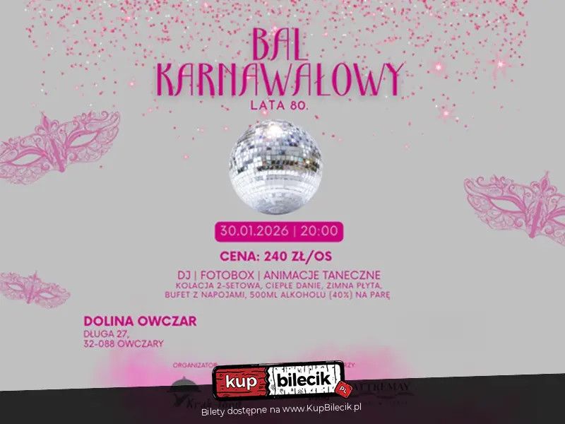 Zapraszamy na pełen kolorów, muzyki i śmiechu Bal Karnawałowy! Bilety do nabycia na: