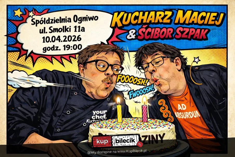 Zdobył sławę w Internecie swoimi brawurowymi filmikami na Tik toku i Instagramie, a teraz będzie bawił widzów na żywo! Kucharz Maciej rusza w trasę po Polsce! Zapraszamy na pierwszy w Polsce stand-up kulinarny. Kucharz Maciej jest zawodowym komikiem i kucharzem od 16 lat. W czasie występu pokazuje kuchnie od kuchni, dzięki czemu żarty żrą jak publiczność która dostaje do spróbowania w czasie występu specjalnie stworzone dla nich danie. Opowiada o swoich doświadczeniach związanych z kuchnią i gotowaniem. Udowadnia np. dlaczego ziemniaki zmieniły jego życie i życie wszystkich rodaków. W czasie programu na żywo gotuje i finalnie daje skosztować kilka porcji swoich wiktuałów. Bilety do nabycia na: