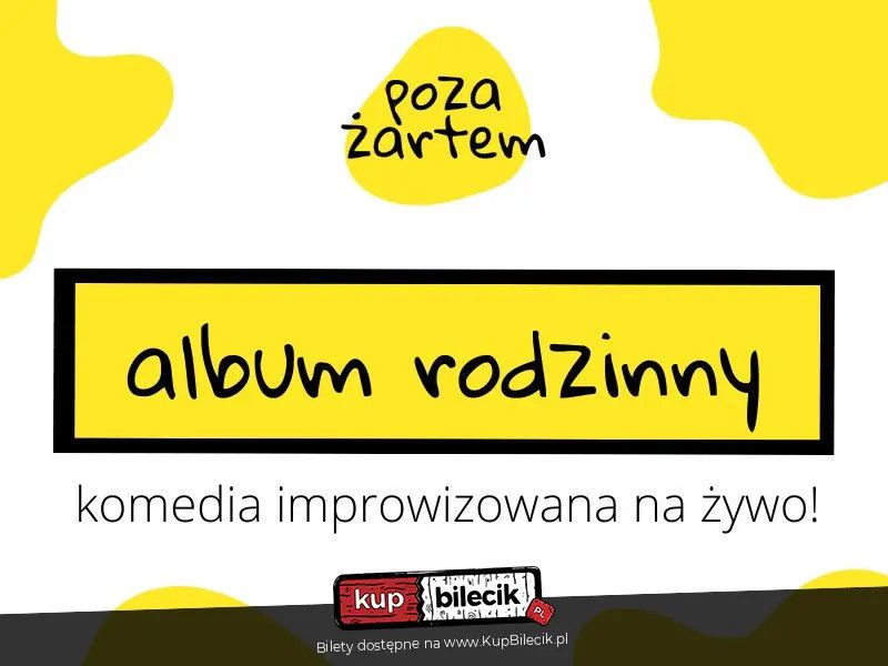 | album rodzinny - wieczór z improwizacją na żywo!dodano 2026-03-20 11:13:11 albumy rodzinne skrywają wiele niespodzianek. zdjęcie w wannie. wspomnienie z wakacji w kołobrzegu. skwaszona mina w reakcji na jakieś zaskakujące zdarzenie. wystąpi poza żartem. grupa tak śmieszna, że jej członkowie często sami nie rozumieją swoich żartów. ich występy rozbawiają do łez lub przynajmniej pozwalają spędzić długie godziny na rozmyślaniu, o co w ogóle chodziło. Bilety do nabycia na: KupBilecik.plpoza żartem artyści: Różni ArtyściSeria improwizowanych gier opartych na sugestiach widzów! Grupa tak śmieszna, że jej członkowie często sami nie rozumieją swoich żartów. Ich występy rozbawiają do łez lub przynajmniej pozwalają spędzić długie godziny na rozmyślaniu, o co w ogóle chodziło. Nikt nie wie co się wydarzy, ale występujący są gotowi na wszystko. Przyjdź, zobacz, co potrafią i pośmiejcie się razem! Bilety do nabycia na: KupBilecik.pl |