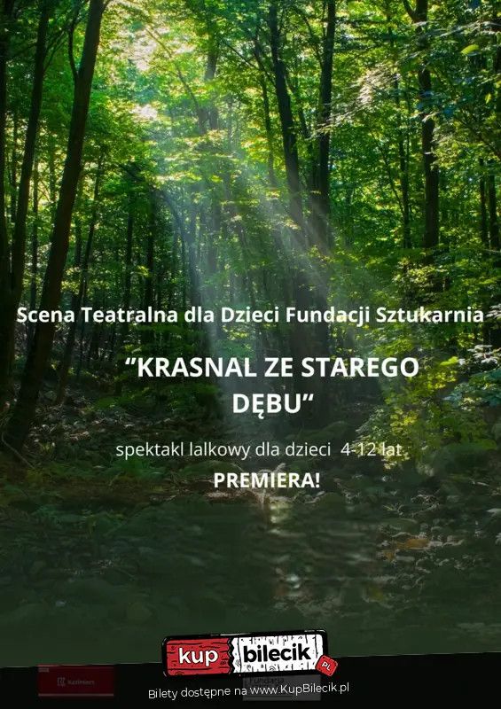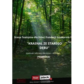 | Lalkowy spektakl dla dzieci Sceny Teatralnej Fundacji Sztukarniadodano 2026-03-26 11:13:09 "Krasnal ze Starego Dębu" to magiczny spektakl lalkowy dla dzieci w wieku 4-12 lat Sceny Teatralnej Fundacji Sztukarnia. To pełna przygód i humoru opowieść o odwadze, przełamywaniu własnych lęków oraz odkrywaniu sensu w świecie pełnym wyzwań! W sercu starego lasu rośnie potężny, stary dąb, w którym mieszka Krasnal. Choć z pozoru nieśmiały, wyrusza w podróż, która odmieni nie tylko jego samego, ale i los całego leśnego świata! Na swojej drodze spotyka barwnych bohaterów: Panią Mysz, Kumaka, Wiewiórkę, Sójkę i Puchacza, który strzeże sekretów natury. Spektakl w przystępny i angażujący sposób porusza ważne tematy: pokazuje, że każdy z nas ma w sobie siłę, by pokonać własne ograniczenia, i podkreśla, jak ważna jest troska o naturę. Dzięki pięknym, autorskim lalkom, nastrojowej muzyce i dynamicznej akcji dzieci zostają wciągnięte w niezwykły świat wyobraźni! To opowieść o odwadze, która rodzi się po cichu. O granicach, które istnieją tylko do chwili, gdy ktoś odważy się je przekroczyć. O dobru i złu, które splatają się jak korzenie pod ziemią. I wreszcie - o naturze, która czeka, aż nauczymy się ją rozumieć. Bilety do nabycia na: KupBilecik.plKrasnal ze Starego Dębu artyści: Scena Teatralna Fundacji Sztukarnia"Krasnal ze Starego Dębu" to magiczny spektakl lalkowy dla dzieci w wieku 4-12 lat Sceny Teatralnej Fundacji Sztukarnia. To pełna przygód i humoru opowieść o odwadze, przełamywaniu własnych lęków oraz odkrywaniu sensu w świecie pełnym wyzwań! W sercu starego lasu rośnie potężny, stary dąb, w którym mieszka Krasnal. Choć z pozoru nieśmiały, wyrusza w podróż, która odmieni nie tylko jego samego, ale i los całego leśnego świata! Bilety do nabycia na: KupBilecik.pl |